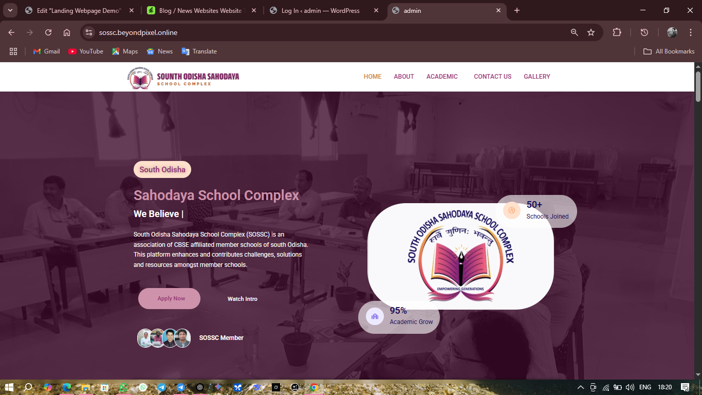 Custom design for schools & coaching centers – with gallery, notice board, admission form, etc.